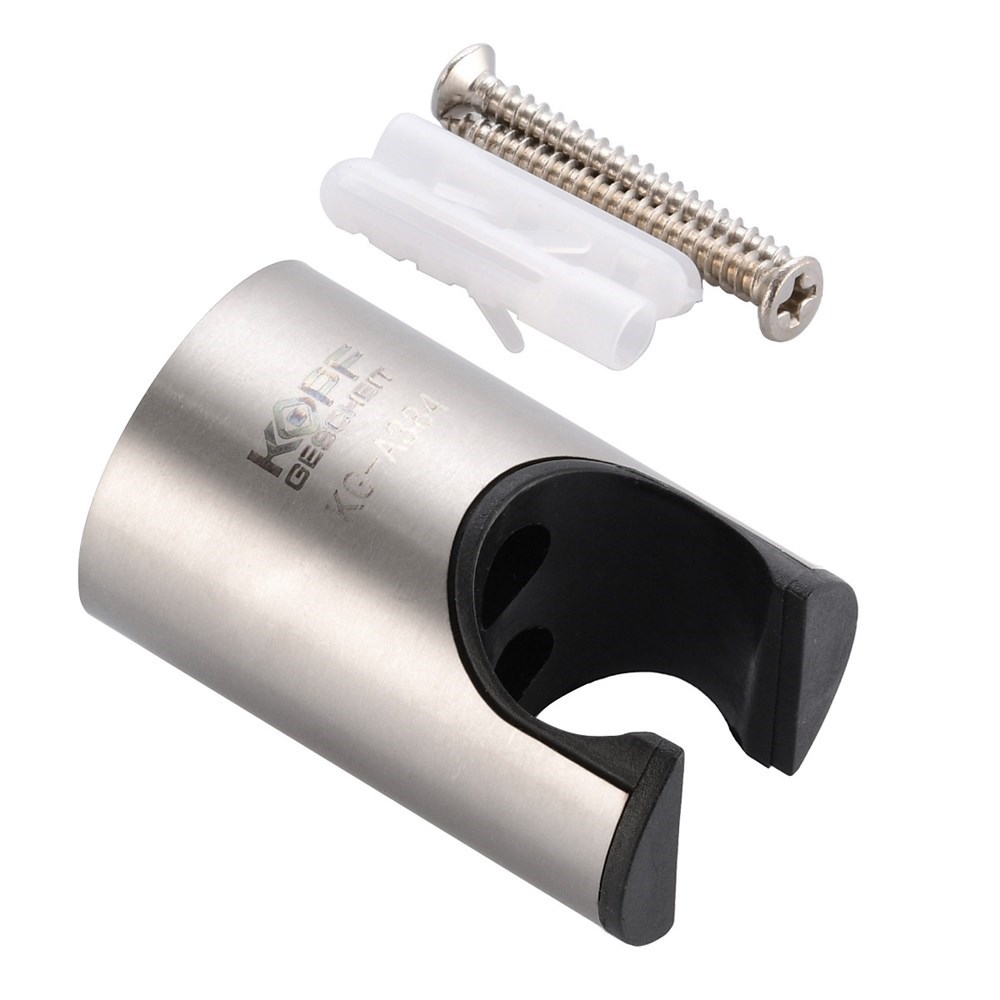Универсальный держатель для лейки гигиенического душа. Выполнен из пластика и нержавеющей стали SUS304. Крепление к стене. Качество изделия заверено логотипом Kopfgescheit