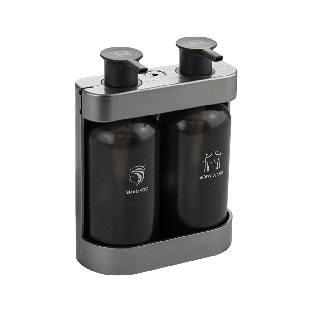 Механический дозатор для жидкого мыла, двойной, антивандальный, предназначен для установки в любых санитарно-гигиенических комнатах. Имеет ключ и пластиковый замок. Дозатор прост в эксплуатации, достаточно нажать на клапан для получения порции средства. Корпус диспенсера изготовлен из прочного пластика АБС серебристого цвета, который выдерживает различные механические воздействия. Дозатор оснащен двумя съёмными ёмкостями объёмом 380 мл каждая, в них можно заливать как шампунь и гель для душа, так и прочие средства. Разместив диспенсер на стене, достаточно время от времени проверять заполненность резервуара. Иного ухода он не требует, не нуждается в замене батареек. Это отличное решение как для частных владений, так и для гостиниц, кафе, столовых и прочих общественных мест. Монтаж дозатора на стену осуществляется с помощью дюбелей или самоклеящегося крепления входящими в комплект. Габаритные размеры: высота 190 мм, ширина 147 мм, глубина мм. Вес - 0,49 кг, объем - 0,00313 м3.