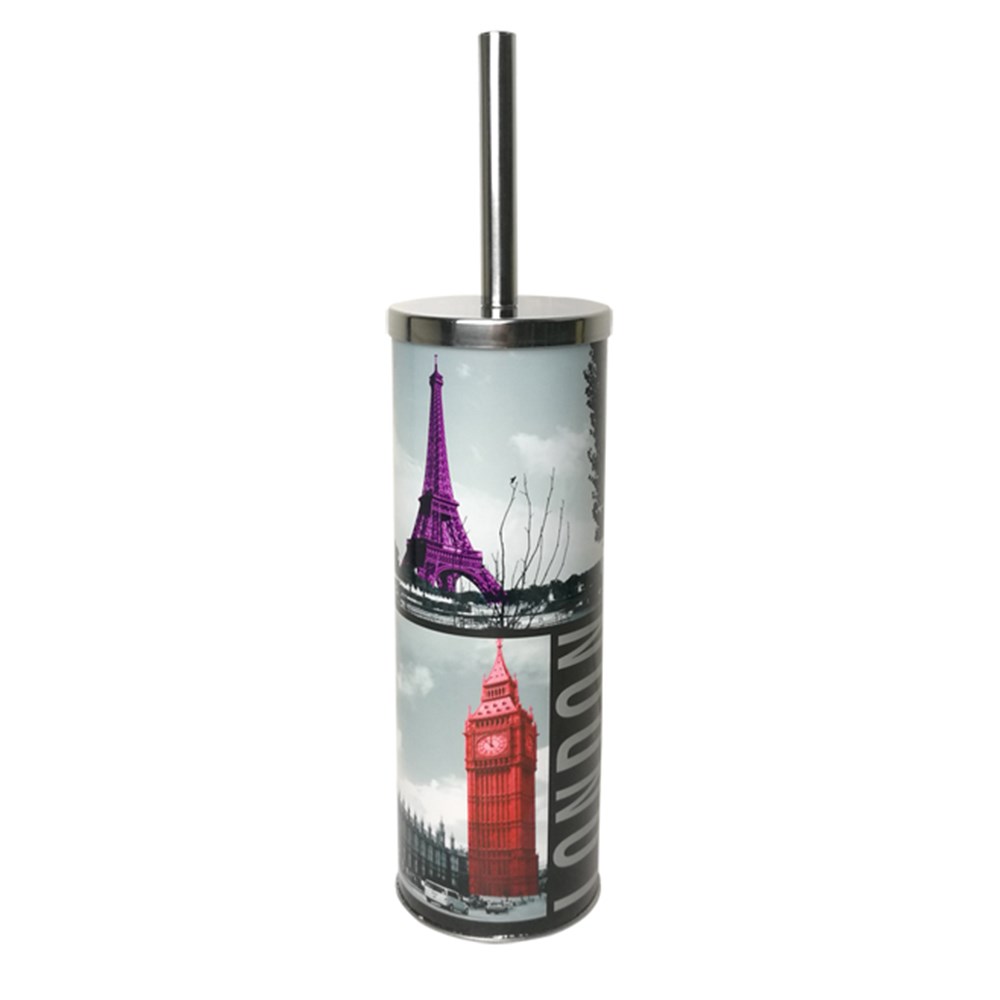 Ёрш для унитаза напольный ФОТОПЕЧАТЬ , круглый из нержавеющей стали