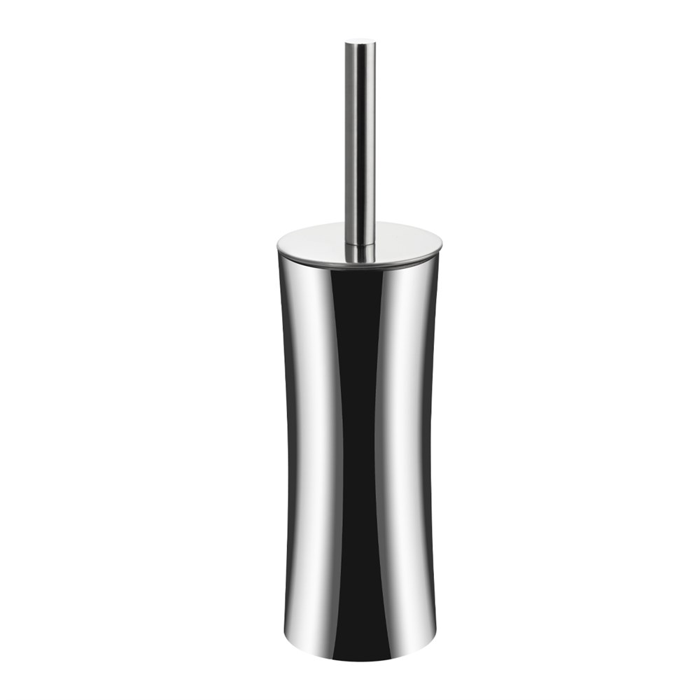 Ёрш для унитаза напольный, круглый, ПРЕМИУМ, с ИЗОГНУТЫМ ЁРШИКОМ, из нержавеющей полированной стали 201