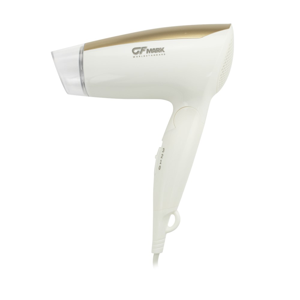 Фен для волос в ванную комнату без креплений, переносной, белый с золотом, предназначен для сушки волос потоком теплого воздуха. Идеально подходит для установки в гостиницах, бассейнах, фитнес-клубах, в раздевалках складских и производственных комплексов. Так же может использоваться в личных ванных комнатах. Электрический фен позволяет комфортно и быстро высушить волосы после душа. Материал корпуса выполнен из белого высокопрочного пластика АБС, устойчивого к механическим повреждениям, перепадам температуры и коррозии. Поэтому электроприбор подходит не только для домашнего, но и для общественного использования – бассейны, сауны, душевые в спортивных залах. Благодаря небольшому весу феном удобно пользоваться. Складной, 3 скорости. 220В, 1600 W, 220В, 2 скорости. Скорость потока 17 м/с. Габаритные размеры: длина 190 мм, высота 250 мм, диаметр фена 50 мм, длина пружинного шнура 380 - 600 мм. Вес - 0,500 кг, объем - 0,00261 м3.