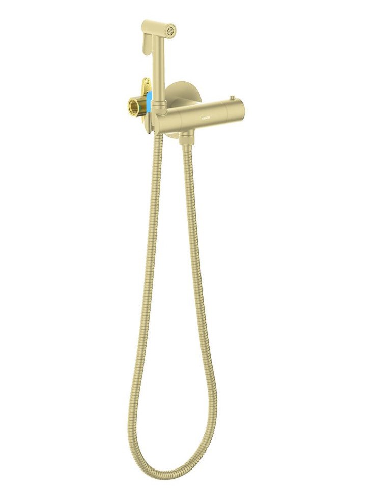 ОБЕРОН комплект для гигиенического душа термостатический встроенный (смеситель + гигиеническая лейка + шланг), шлиф. золото