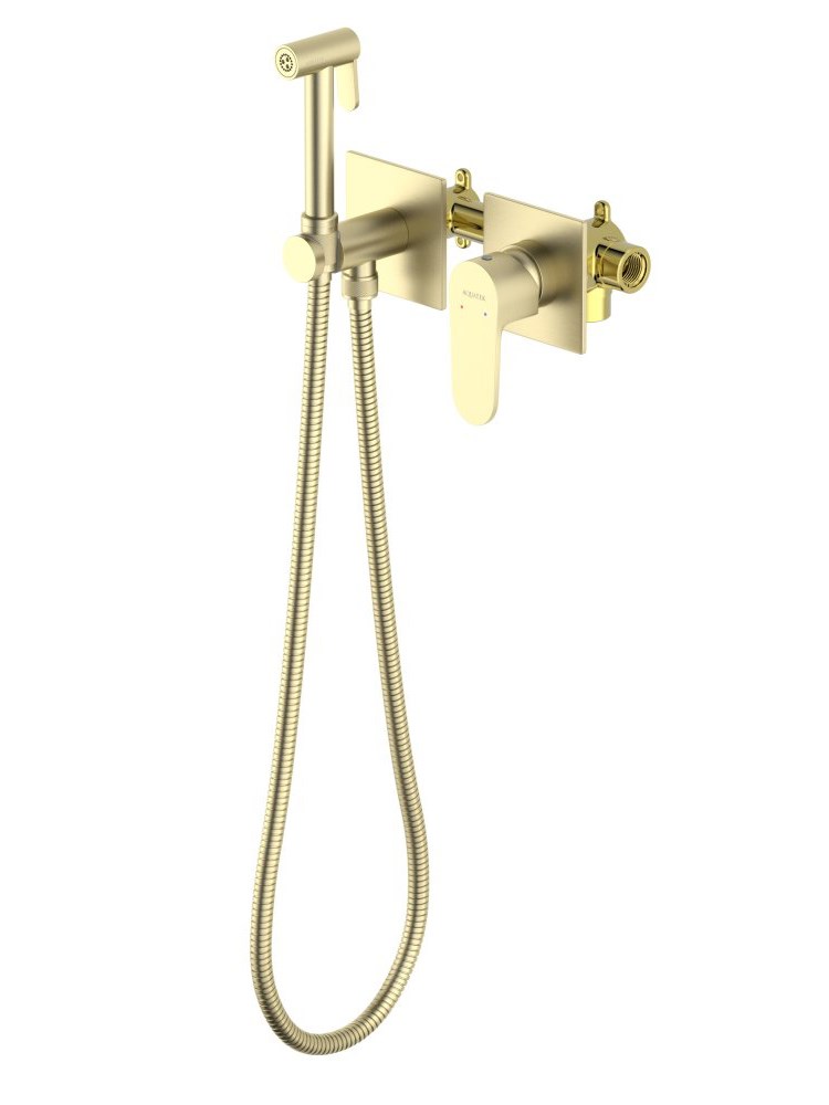 ОБЕРОН комплект для гигиенического душа встроенный 2 отв. (смеситель + гигиеническая лейка + шланг), шлиф. золото