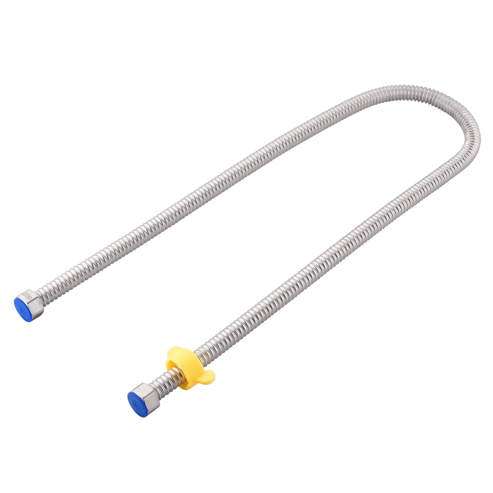 Гибкая сильфонная подводка для воды. Труба и гайки выполнены из нержавеющей стали марки SUS304. В комплекте один гофрированный шланг длиной 100 см со встроенным ключом. Подключение осуществляется с помощью гаек с внутренней резьбой ½”. Качественная нержавеющая сталь обеспечивает длительный, не менее 10 лет, срок службы.