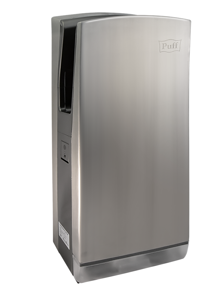 Электрическая сушилка для рук Puff-8899 (хром) относится к классу высокоскоростных электросушилок с вертикальной загрузкой рук во влагоприемник.