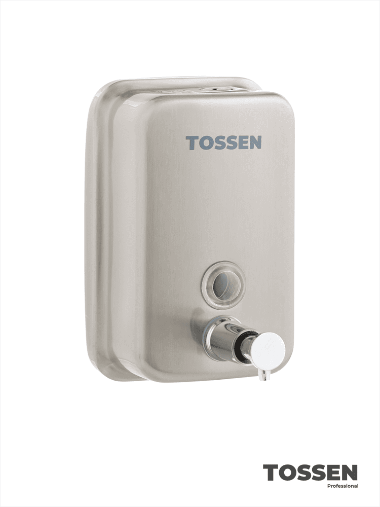 TOSSEN MN-500 M (Steel Line) - компактный механический дозатор жидкого мыла. Корпус диспенсера выполнен из нержавеющей стали. Оснащен надежным механизмом дозирования, смотровым окошком для контроля наличия мыла, а также замком для исключения несанкционированного доступа к содержимому и механизмом, предотвращающим его кражу.