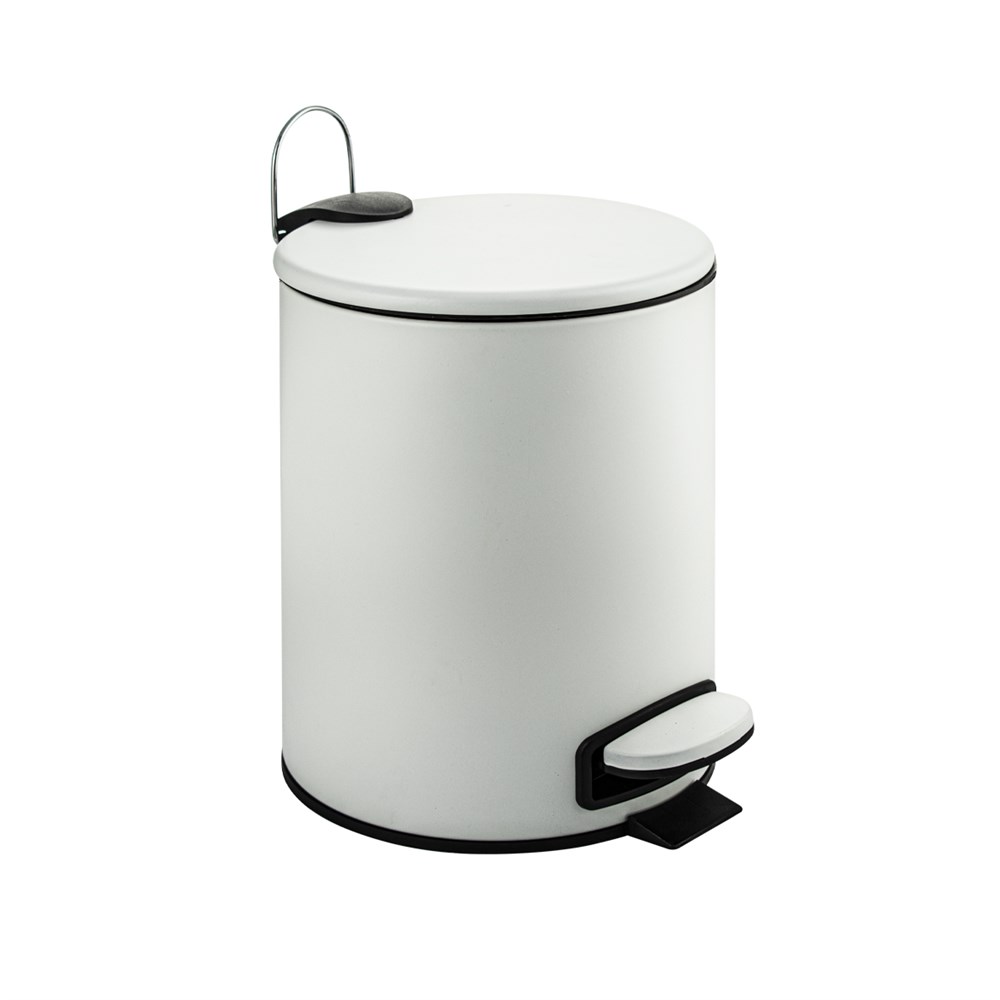 Ведро из нержавеющей стали, с педалью, круглое, 5 литров, плоская крышка микролифт, цвет БЕЛЫЙ.